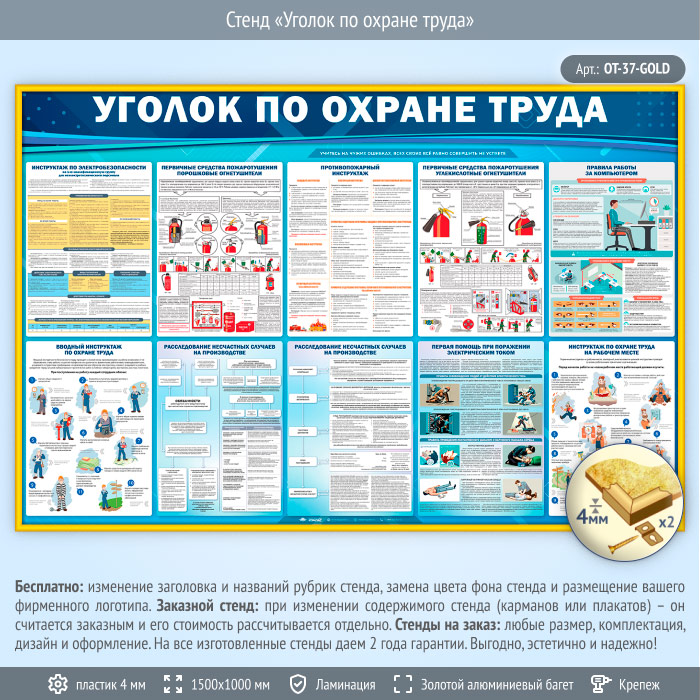 Стенд «Уголок по охране труда» (OT-37-GOLD) в Ижевске купить