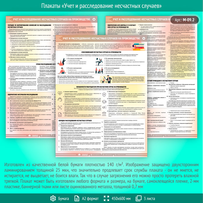Плакаты «Учет и расследование несчастных случаев» (М-09.2, ламинированная бумага, А2, 3 листа) в Ижевске купить