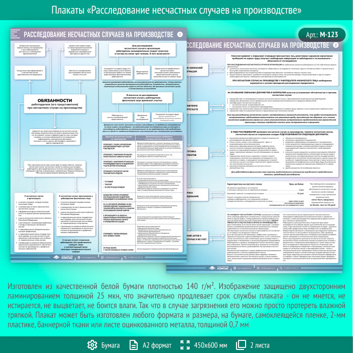 Плакаты «Расследование несчастных случаев на производстве» (М-123, ламинированная бумага, А2, 2 листа) в Ижевске купить