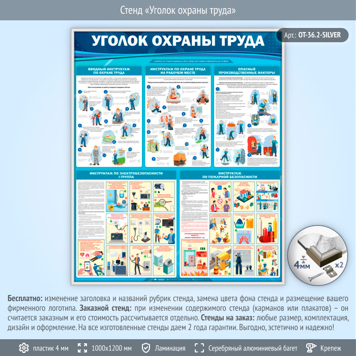 Стенд «Уголок охраны труда» (OT-36.2-SILVER) в Ижевске купить