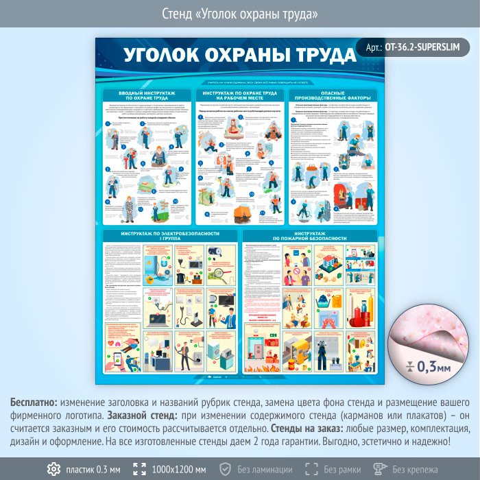 Стенд «Уголок охраны труда» (OT-36.2-SUPERSLIM) в Ижевске купить