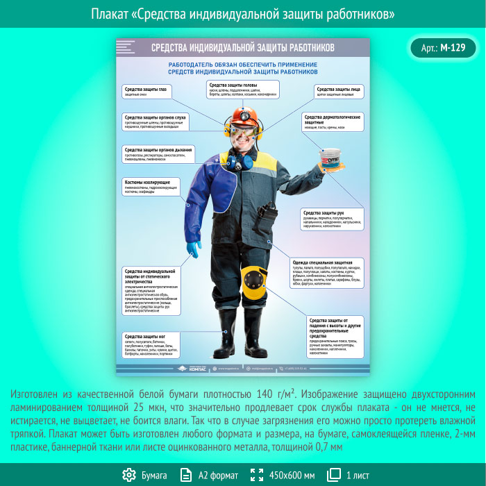 Плакат «Средства индивидуальной защиты работников» (М-129, ламинированная бумага, А2, 1 лист) в Ижевске купить