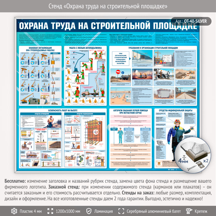 Стенд «Охрана труда на строительной площадке» (OT-40-SILVER) в Ижевске купить