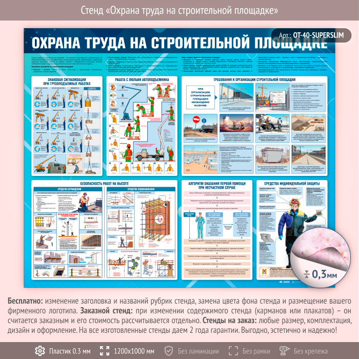 Стенд «Охрана труда на строительной площадке» (OT-40-SUPERSLIM) в Ижевске купить