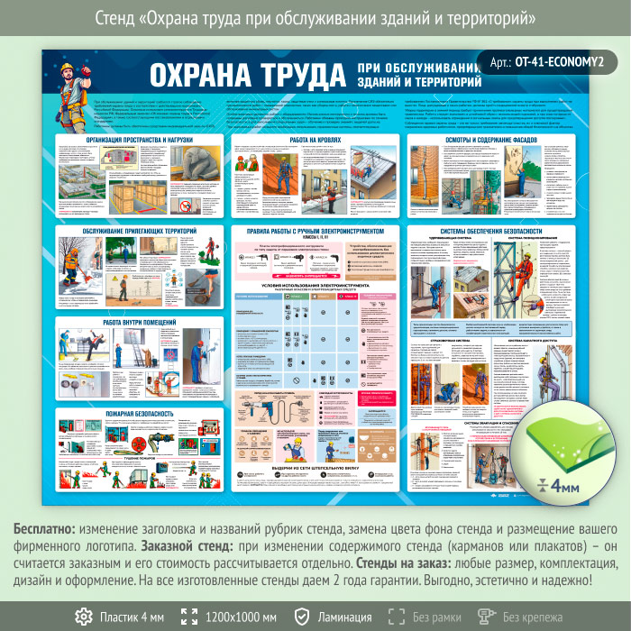 Стенд «Охрана труда при обслуживании зданий и территорий» (OT-41-ECONOMY2) в Ижевске купить
