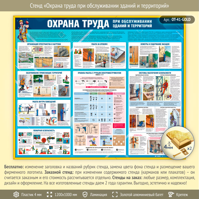 Стенд «Охрана труда при обслуживании зданий и территорий» (OT-41-GOLD) в Ижевске купить
