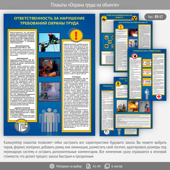 Плакаты «Охрана труда на объекте» (ВЗ-17, 6 листов) в Ижевске купить