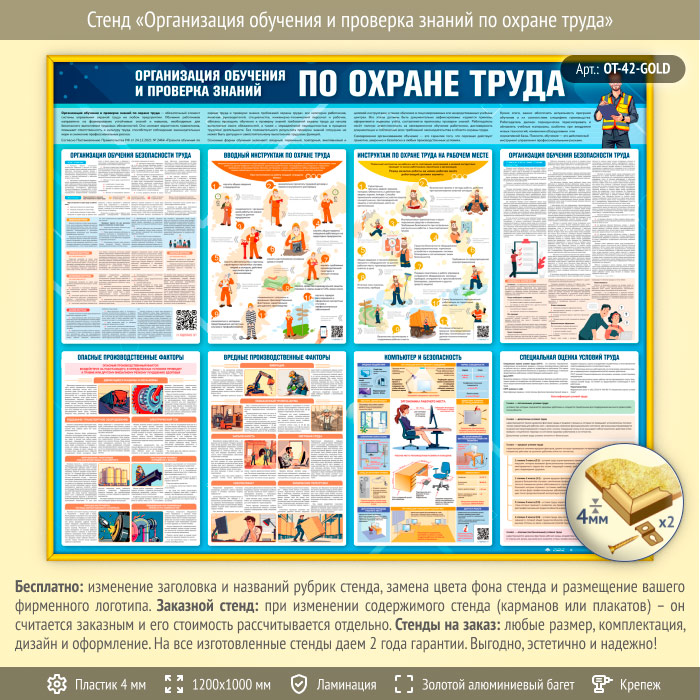 Стенд «Организация обучения и проверка знаний по охране труда» (OT-42-GOLD) в Ижевске купить