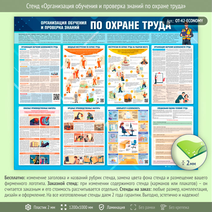Стенд «Организация обучения и проверка знаний по охране труда» (OT-42-ECONOMY) в Ижевске купить