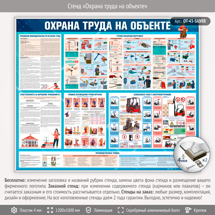 Стенд «Охрана труда на объекте» (OT-43-SILVER) в Ижевске купить