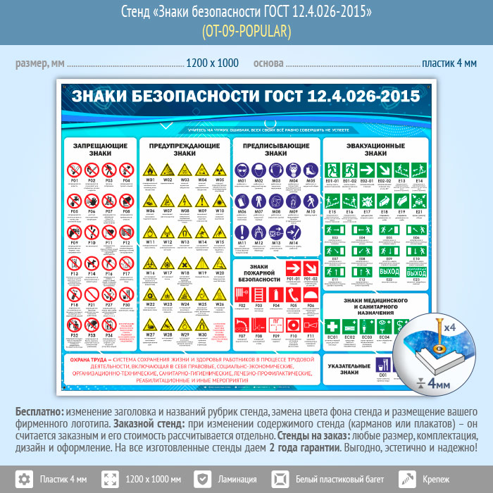 Стенд «Знаки безопасности ГОСТ 12.4.026-2015» (OT-09-POPULAR) в Ижевске купить