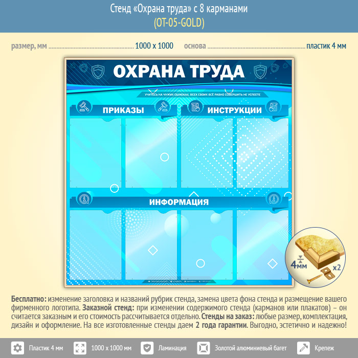 Стенд «Охрана труда» с 8 карманами (OT-05-GOLD) в Ижевске купить