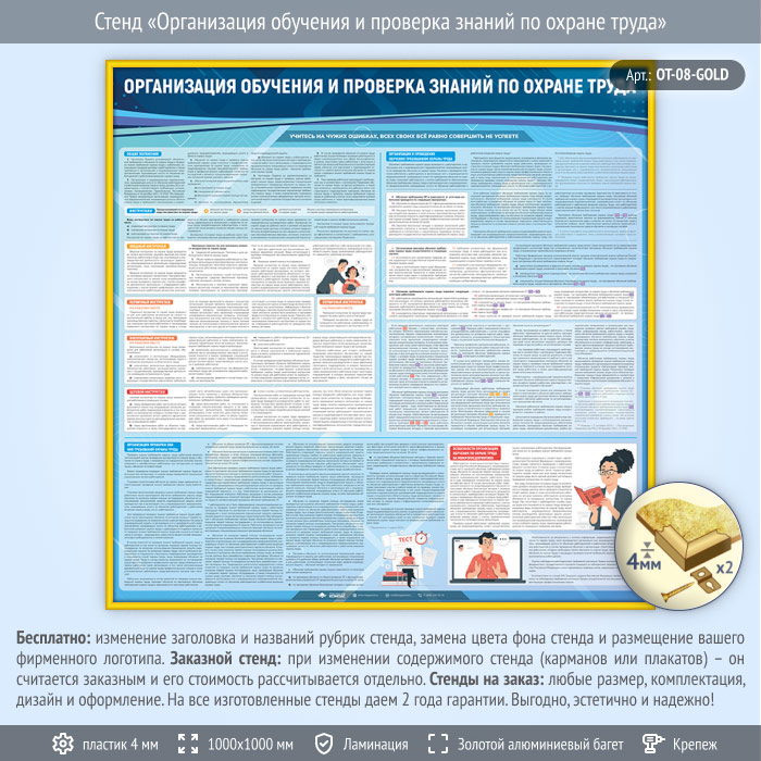 Стенд «Организация обучения и проверка знаний по охране труда» (OT-08-GOLD) в Ижевске купить