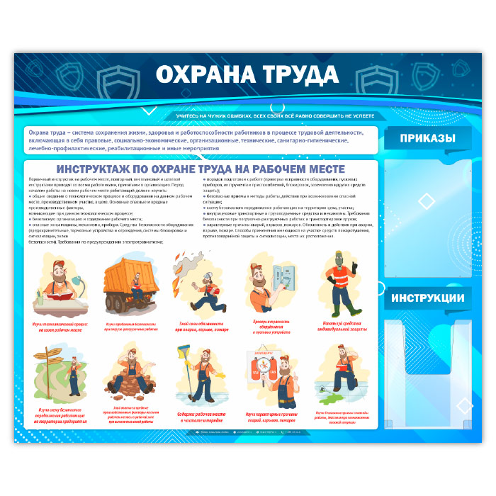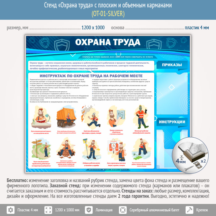 Стенд «Охрана труда» с плоским и объемным карманами (OT-01-SILVER) в Ижевске купить