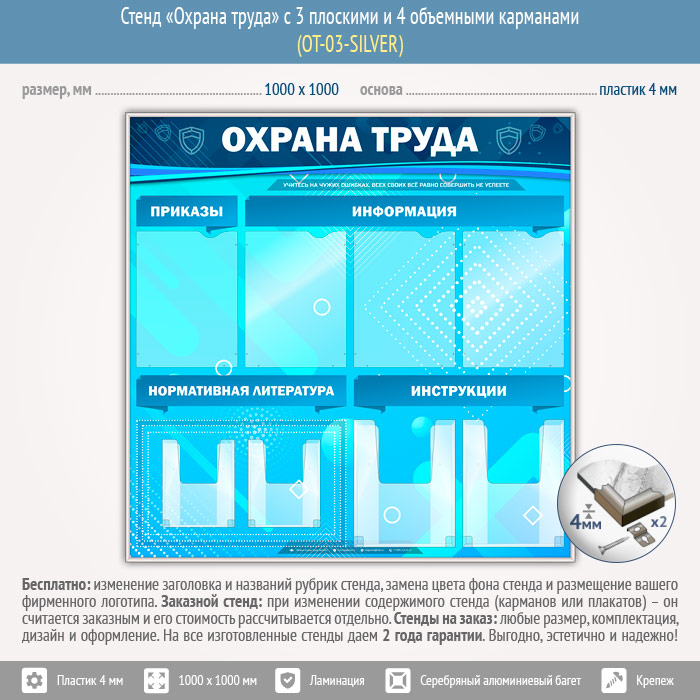 Стенд «Охрана труда» с 4 плоскими и 4 объемными карманами (OT-03-SILVER) в Ижевске купить
