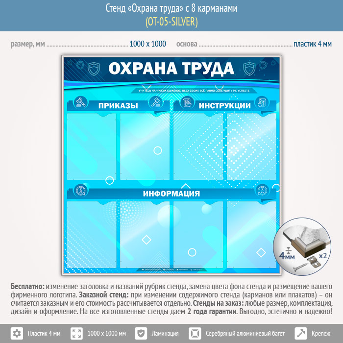 Стенд «Охрана труда» с 8 карманами (OT-05-SILVER) в Ижевске купить