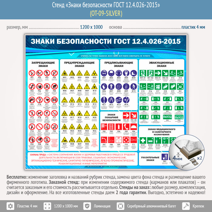 Стенд «Знаки безопасности ГОСТ 12.4.026-2015» (OT-09-SILVER) в Ижевске купить