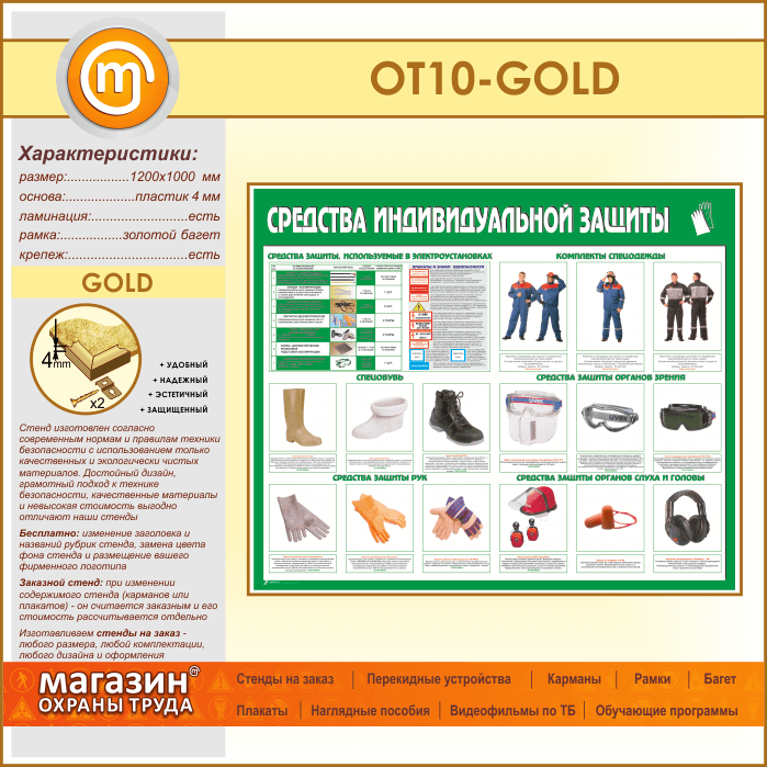 Стенд «Средства индивидуальной защиты» (OT-10-GOLD) в Ижевске купить