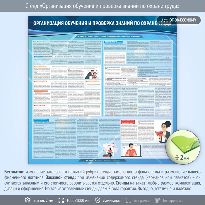 Стенд «Организация обучения и проверка знаний по охране труда» (OT-08-ECONOMY) в Ижевске купить