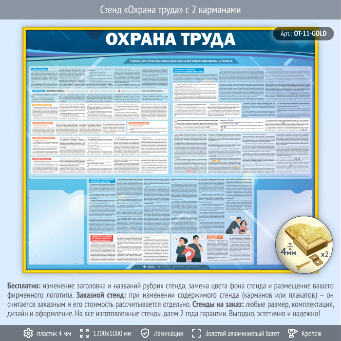 Стенд «Охрана труда» с 2 карманами (OT-11-GOLD) в Ижевске купить