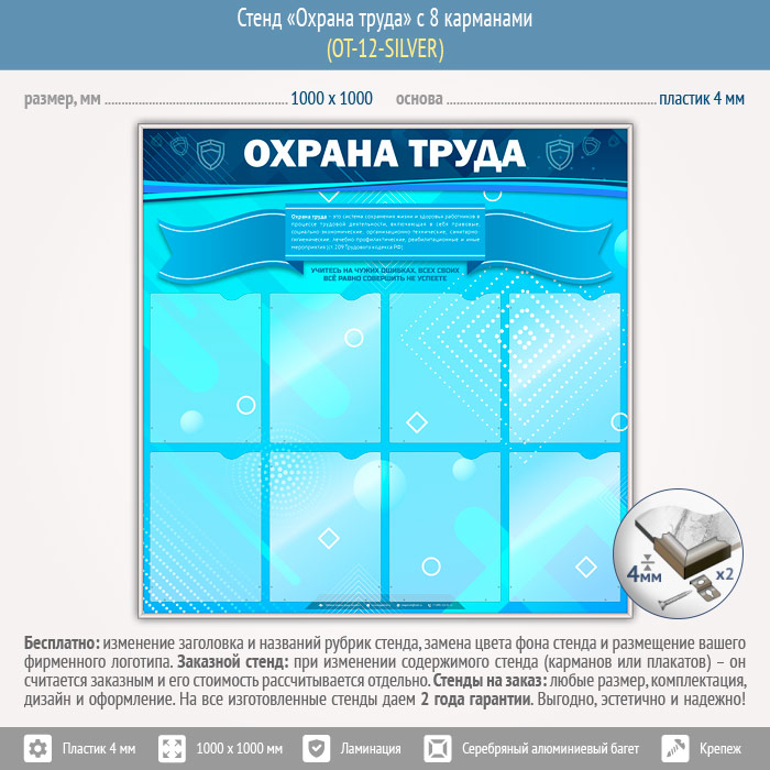 Стенд «Охрана труда» с 8 карманами (OT-12-SILVER) в Ижевске купить