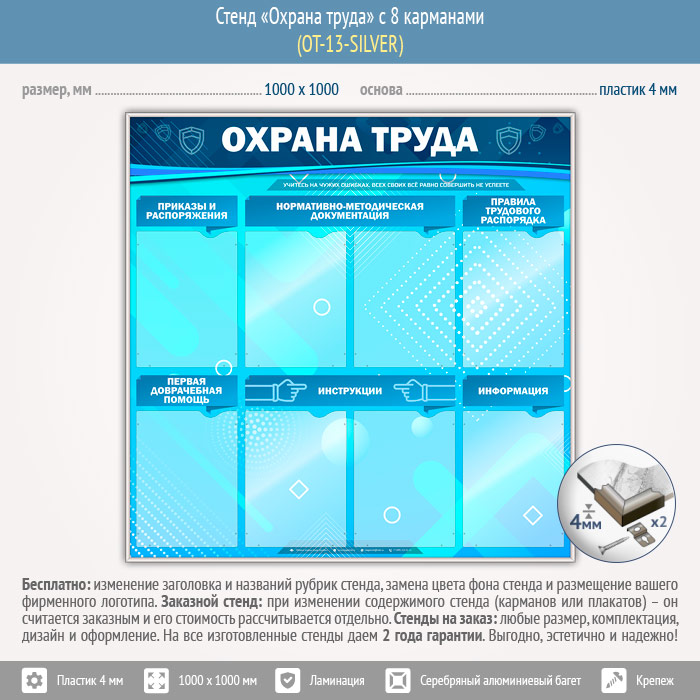 Стенд «Охрана труда» с 8 карманами (OT-13-SILVER) в Ижевске купить