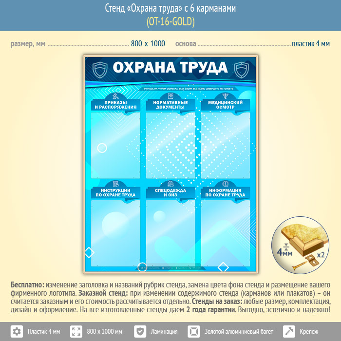 Стенд «Охрана труда» с 6 карманами (OT-16-GOLD) в Ижевске купить