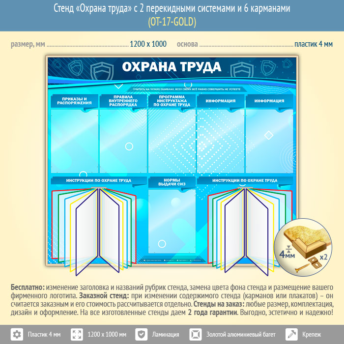 Стенд «Охрана труда» с 2 перекидными системами и 6 карманами (OT-17-GOLD) в Ижевске купить