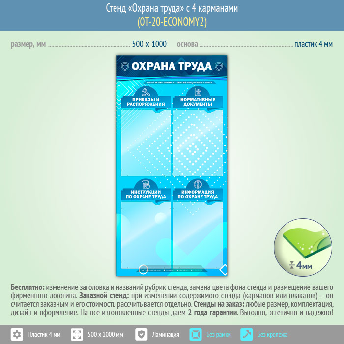 Стенд «Охрана труда» с 4 карманами (OT-20-ECONOMY2) в Ижевске купить