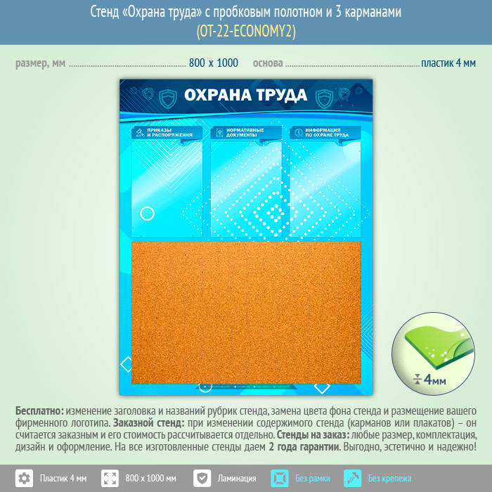Стенд «Охрана труда» с пробковым полотном и 3 карманами (OT-22-ECONOMY2) в Ижевске купить