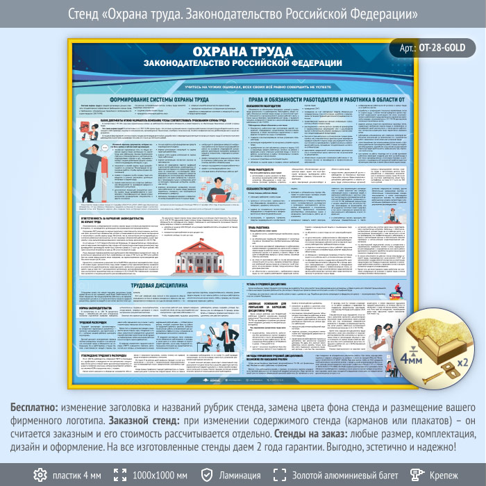 Стенд «Охрана труда. Законодательство Российской Федерации» (OT-28-GOLD) в Ижевске купить