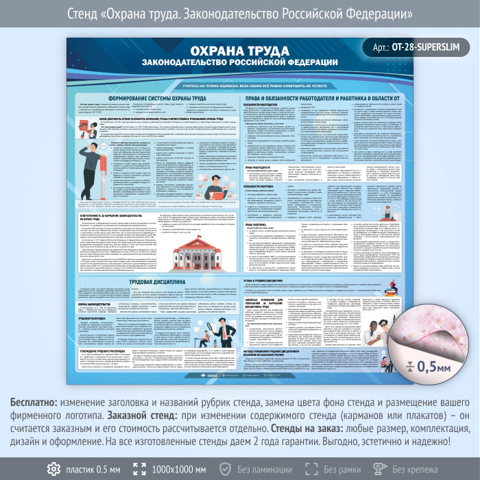 Стенд «Охрана труда. Законодательство Российской Федерации» (OT-28-SUPERSLIM) в Ижевске купить