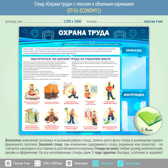 Стенд «Охрана труда» с плоским и объемным карманами (OT-01-ECONOMY2) в Ижевске купить