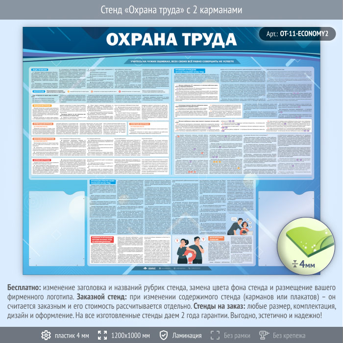 Стенд «Охрана труда» с 2 карманами (OT-11-ECONOMY2) в Ижевске купить
