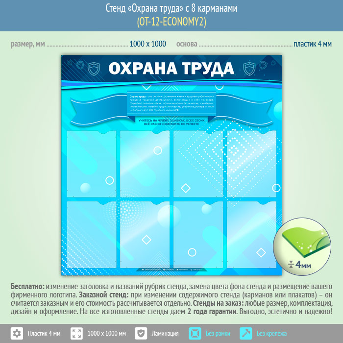 Стенд «Охрана труда» с 8 карманами (OT-12-ECONOMY2) в Ижевске купить