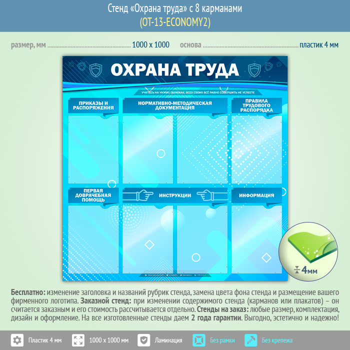 Стенд «Охрана труда» с 8 карманами (OT-13-ECONOMY2) в Ижевске купить