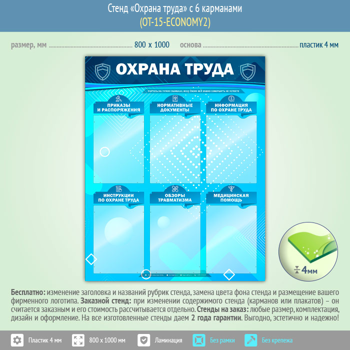 Стенд «Охрана труда» с 6 карманами (OT-15-ECONOMY2) в Ижевске купить