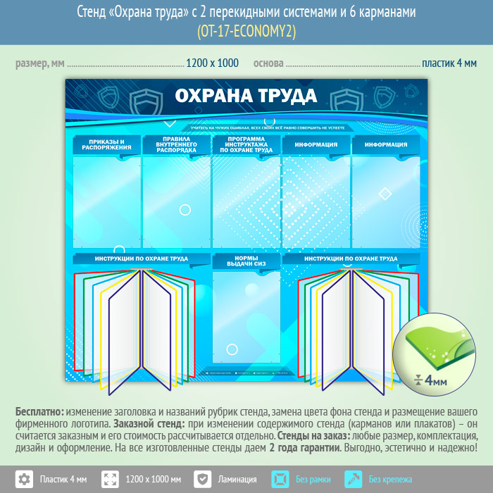 Стенд «Охрана труда» с 2 перекидными системами и 6 карманами (OT-17-ECONOMY2) в Ижевске купить
