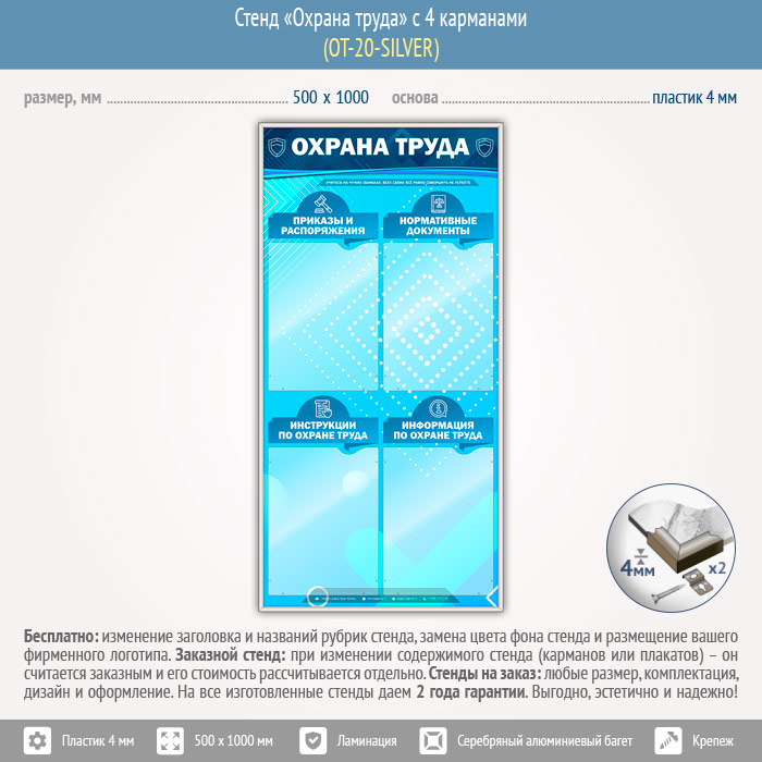 Стенд «Охрана труда» с 4 карманами (OT-20-SILVER) в Ижевске купить
