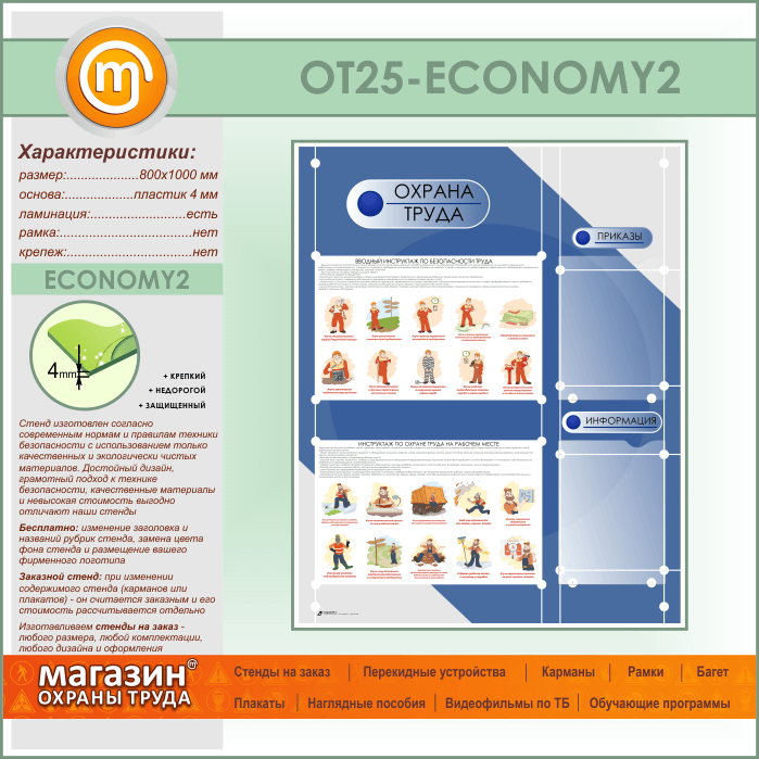 Стенд «Охрана труда» с 2 плоскими карманами (OT-25-ECONOMY2) в Ижевске купить