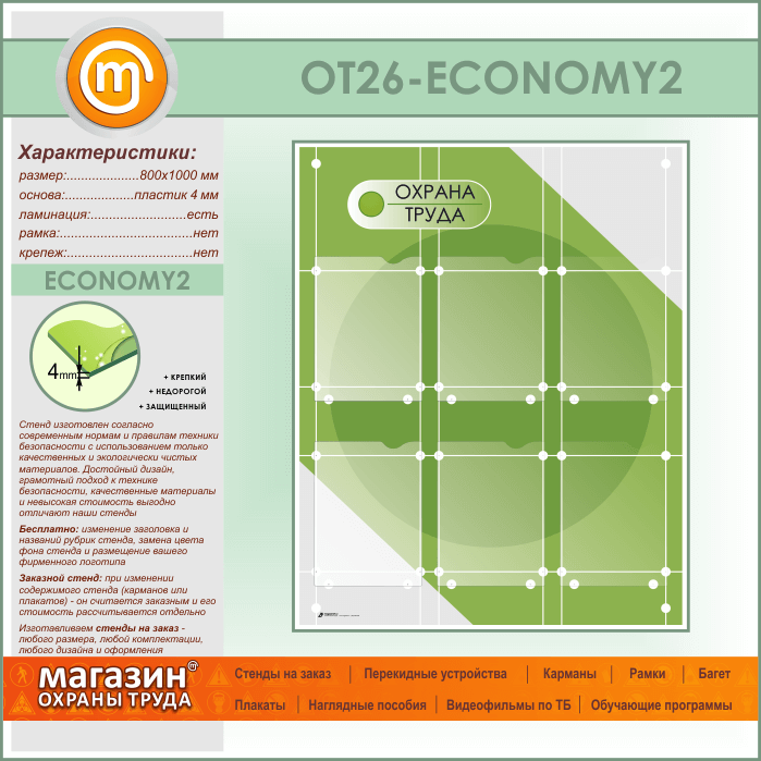 Стенд «Охрана труда» с 6 плоскими карманами (OT-26-ECONOMY2) в Ижевске купить
