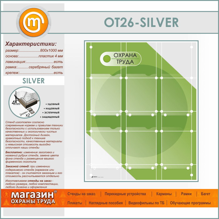 Стенд «Охрана труда» с 6 плоскими карманами (OT-26-SILVER) в Ижевске купить