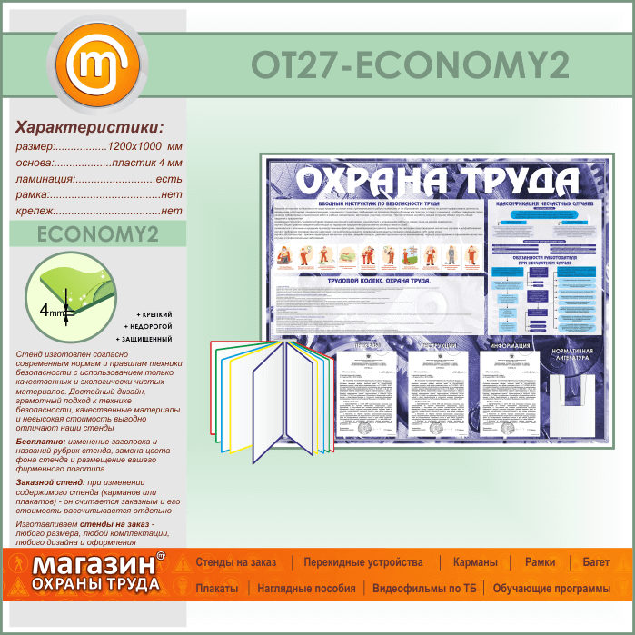 Стенд «Охрана труда» с перекидной системой, 3 плоскими и 1 объемным карманом (OT-27-ECONOMY2) в Ижевске купить