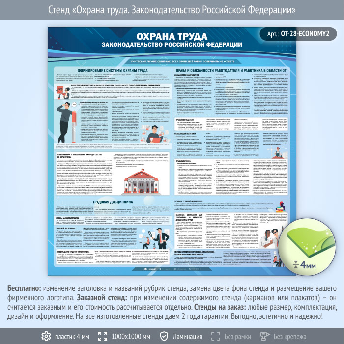 Стенд «Охрана труда. Законодательство Российской Федерации» (OT-28-ECONOMY2) в Ижевске купить