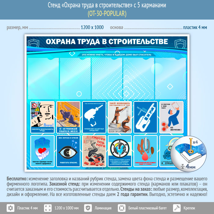 Стенд «Охрана труда в строительстве» с 5 карманами (OT-30-POPULAR) в Ижевске купить