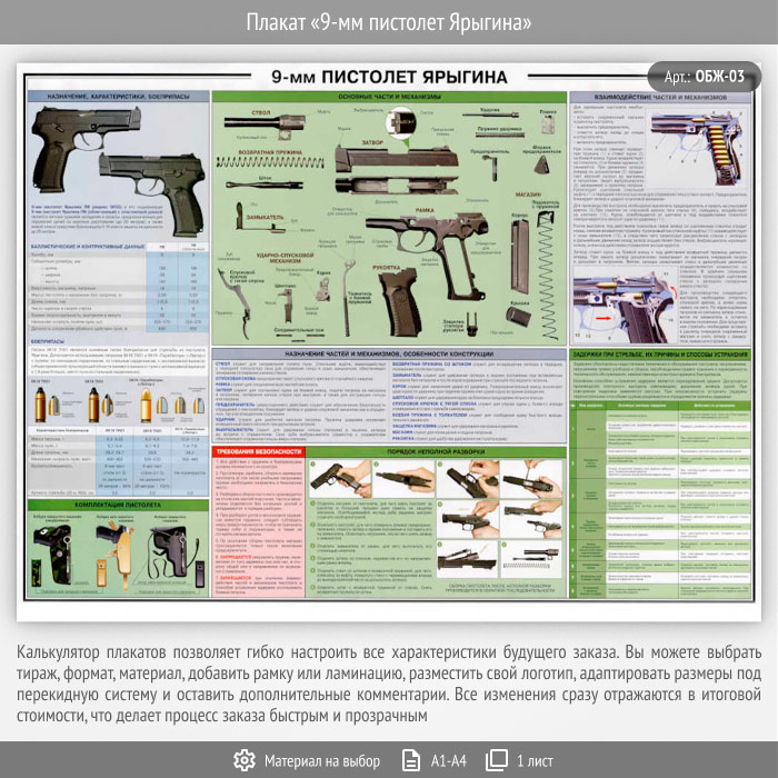 Плакат «9-мм пистолет Ярыгина» (ОБЖ-03, 1 лист) в Ижевске купить