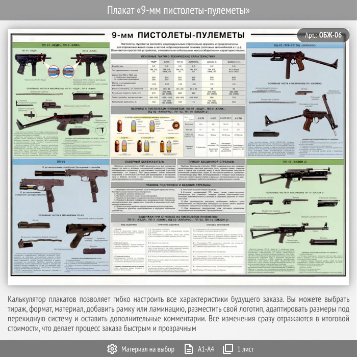 Плакат «9-мм пистолеты-пулеметы» (ОБЖ-06, 1 лист) в Ижевске купить