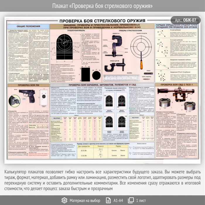 Плакат «Проверка боя стрелкового оружия» (ОБЖ-07, 1 лист) в Ижевске купить