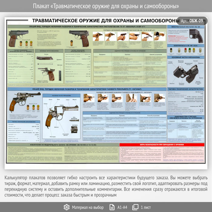 Плакат «Травматическое оружие для охраны и самообороны» (ОБЖ-09, 1 лист) в Ижевске купить