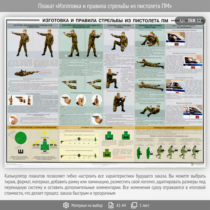Плакат «Изготовка и правила стрельбы из пистолета ПМ» (ОБЖ-12, 1 лист) в Ижевске купить